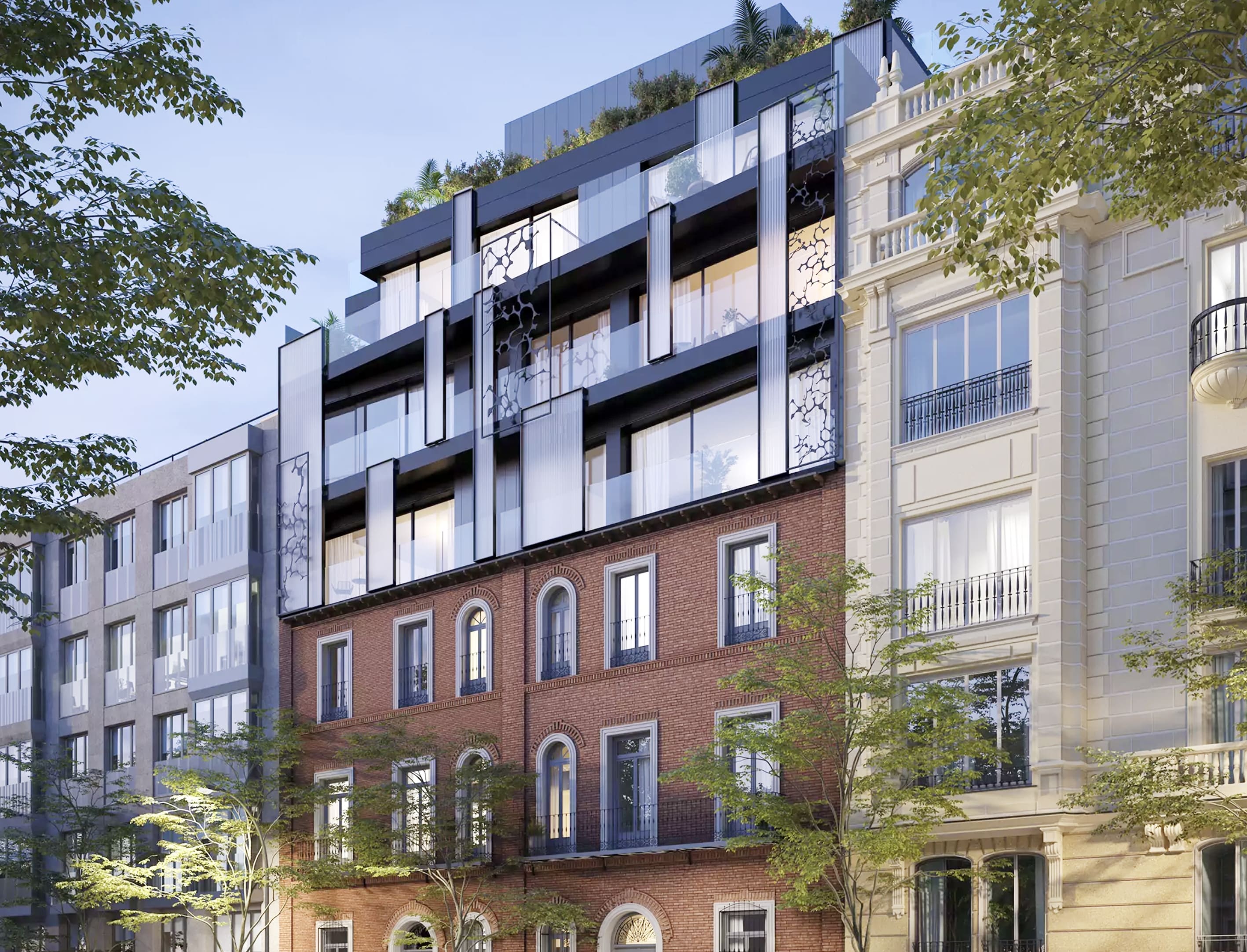 The homes at 26 Zurbarán are designed to enjoy the light without compromising space. Two duplex penthouses with roof gardens and six three- and four-bedroom homes with surfaces between 210 m2 and 312 m2. The design of the homes takes into account the balance established between tradition and the natural context of their location. Homes with a special air of warmth at the intersection of beauty and tradition.