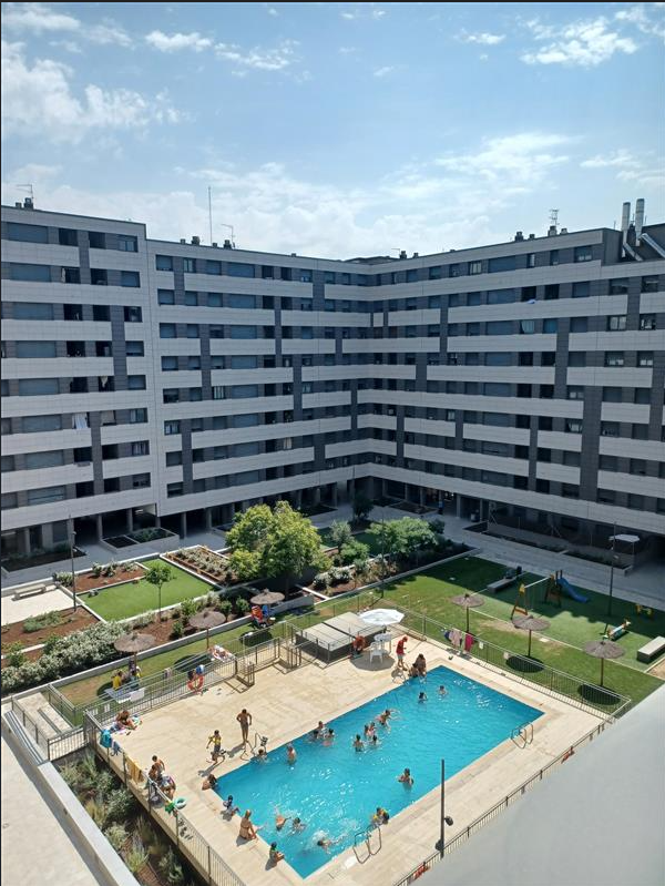 Situado en Vallecas, este nuevo proyecto consta de un aparthotel que contará con 285 apartamentos rodeados de zonas comunes y piscina comunitaria.